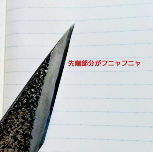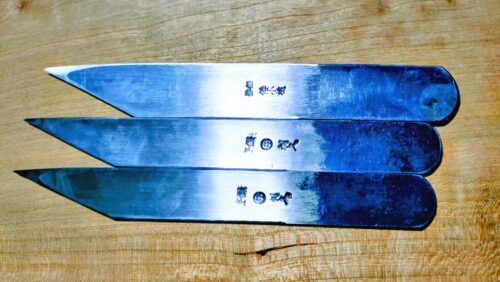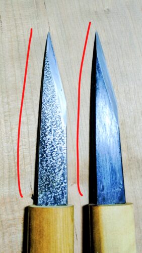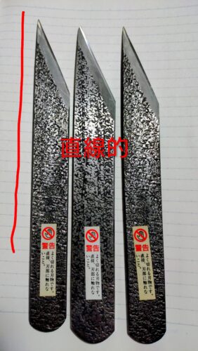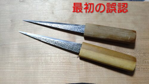 *刃の根元近辺の成形が利久と倭小槌では曲線状になっていましたが、西口小刀は直線になっていました。